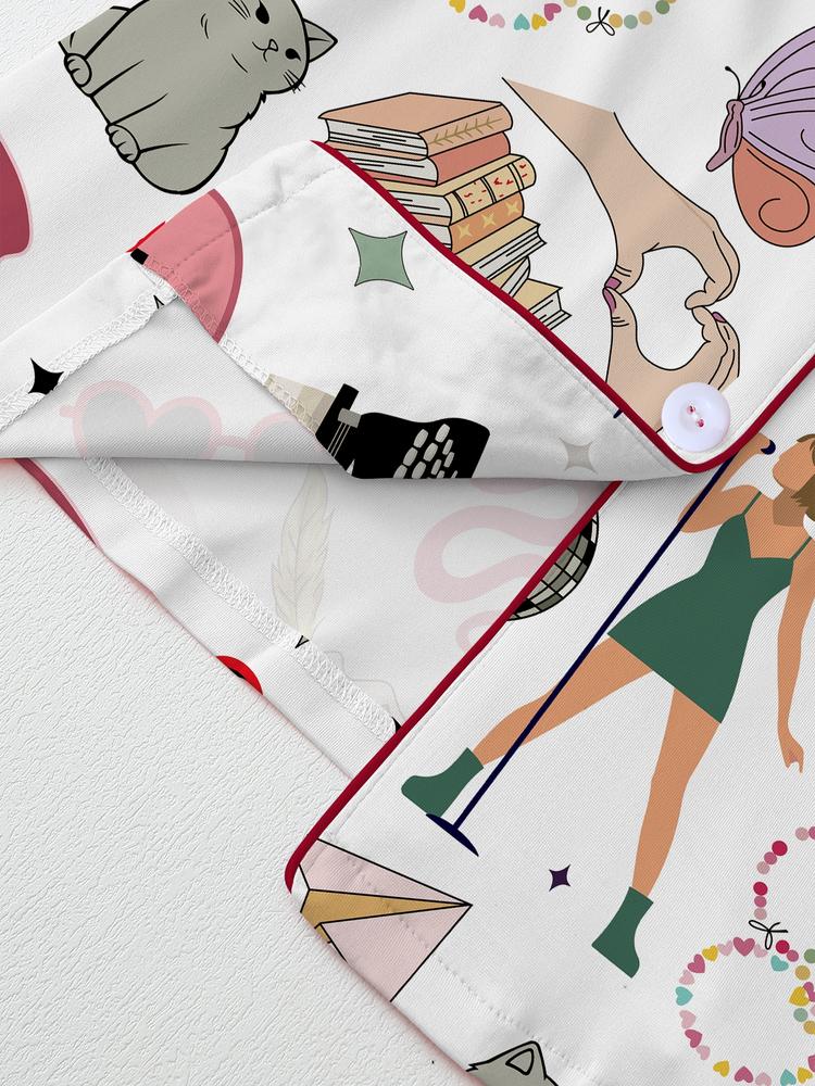 Women's Showgirl Pajama Set – Elegant Long Sleeve All-Over Print Sleepwear, Cozy Home Wear for Fall & Winter, Perfect Gift for Music Lovers