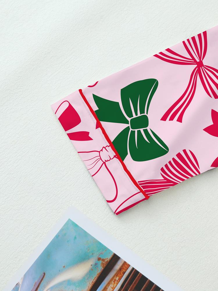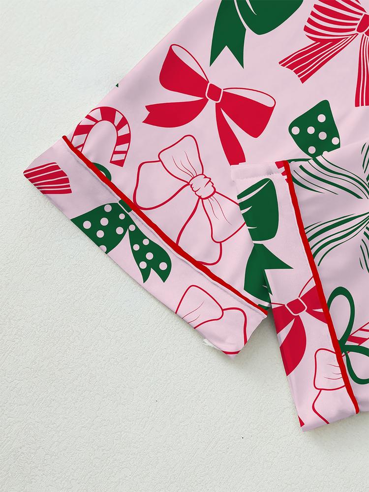Women's Christmas Pajama Set – Bow Long Sleeve Top & Pants, Fitted Comfortable Fall/Winter Sleepwear