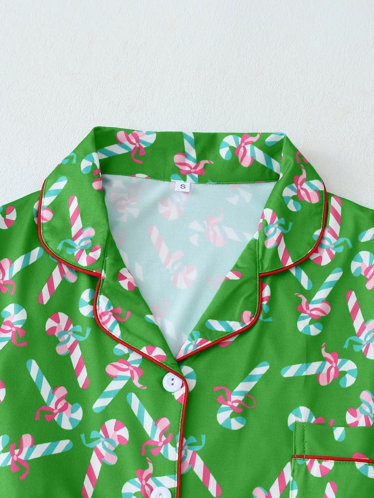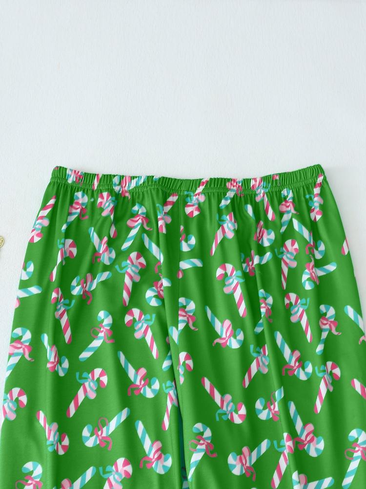 Women's Christmas Pajama Set – Bowknot Long Sleeve Top & Pants, Fitted Holiday Sleepwear, Fall/Winter Home Wear