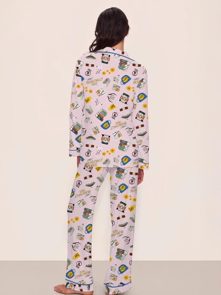 Women's Stars Hollow Pajama Set – Cute & Comfortable Long Sleeve Top & Pants, Fall/Winter Loungewear