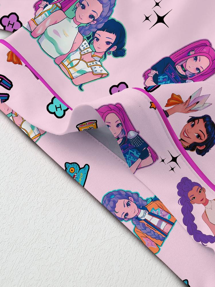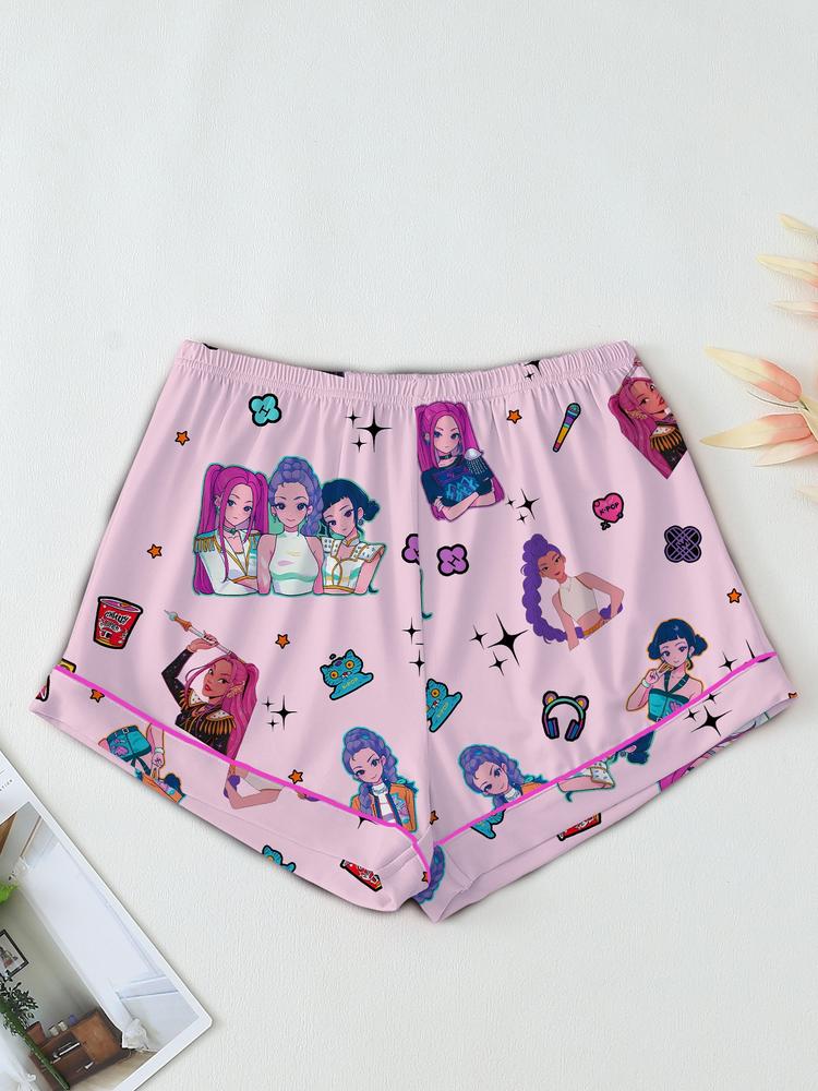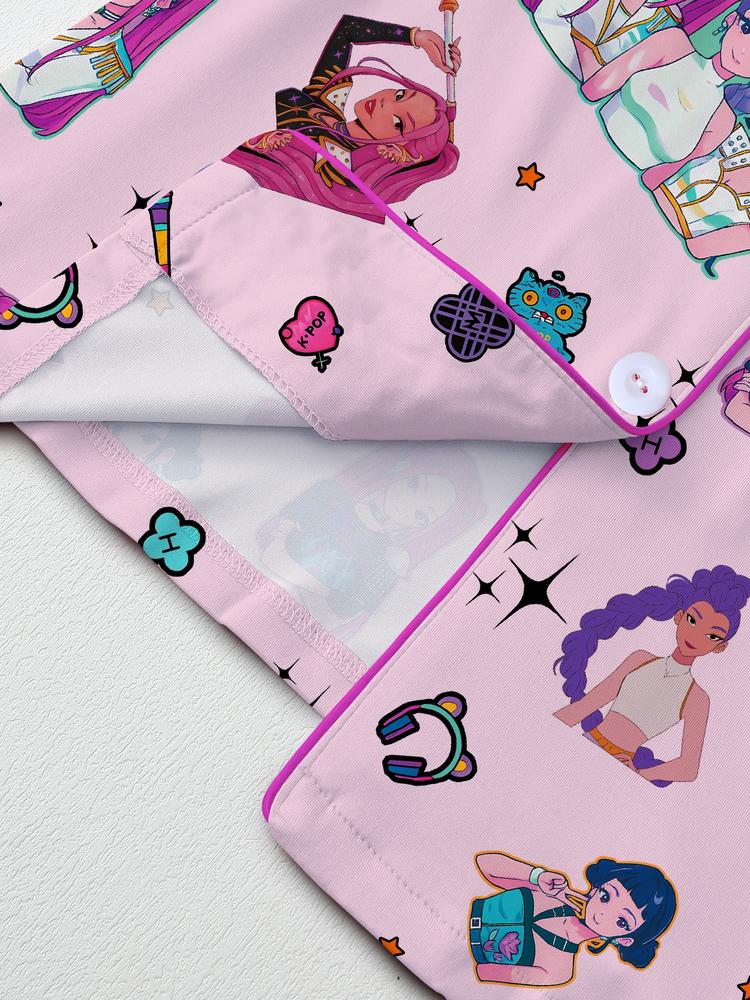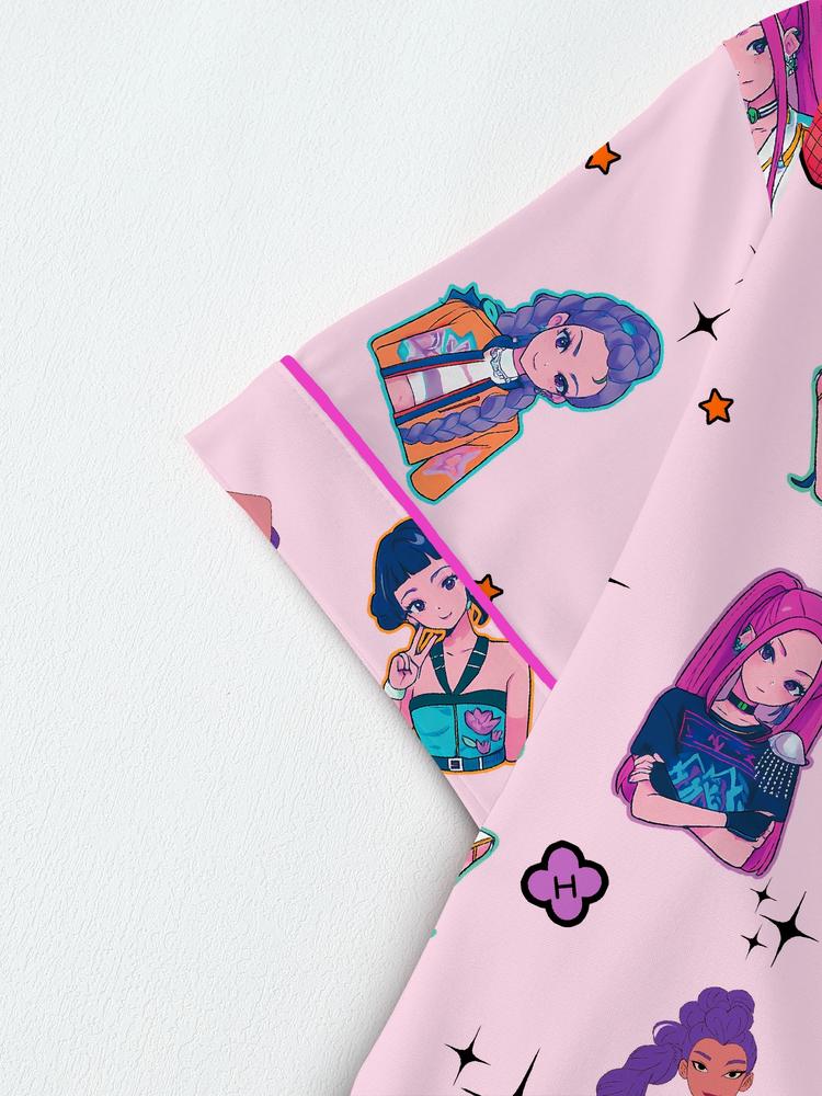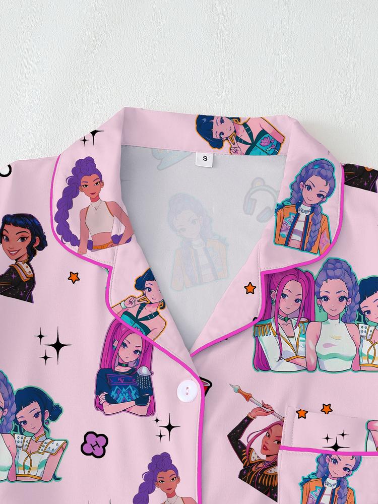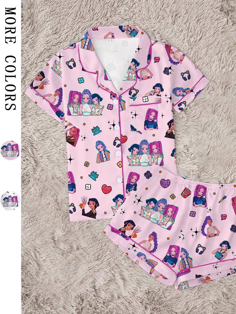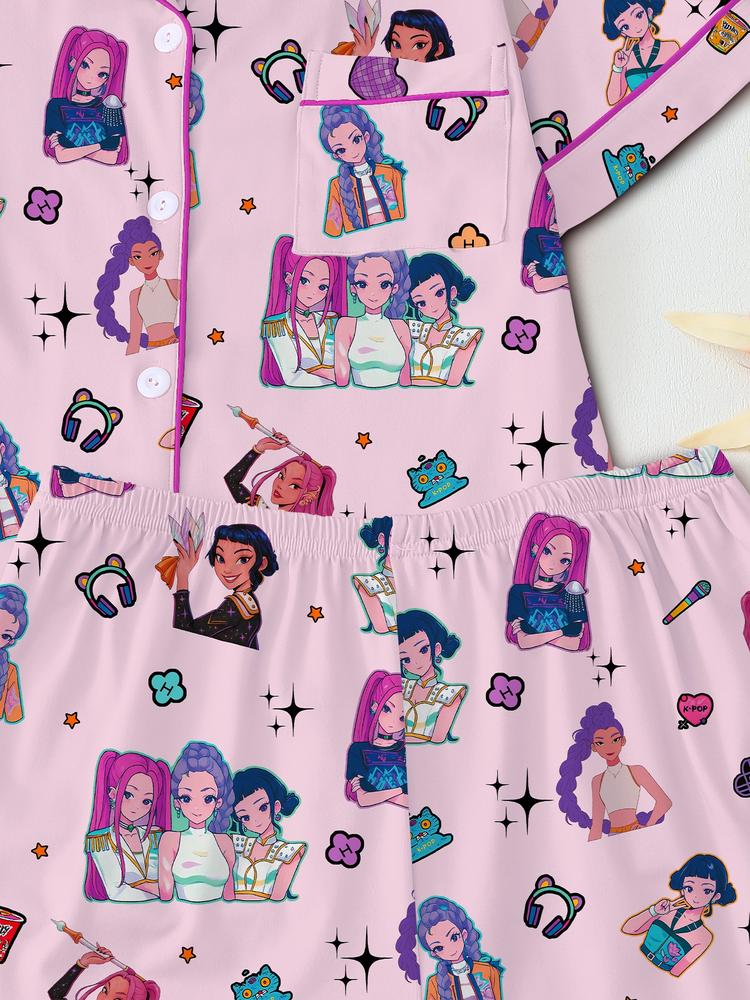 Women's K-Pop Demon Hunter Tiger Pajama Set – Short Sleeve Button-Up Top & Shorts, Comfortable Home Sleepwear, Netflix Fan Gift